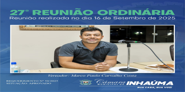 No dia 16 de Setembro, às 19h, foi realizada a 27ª Reunião Ordinária do ano legislativo 2025 da Câmara Municipal de Inhaúma, onde foram apresentadas diversas solicitações da população.